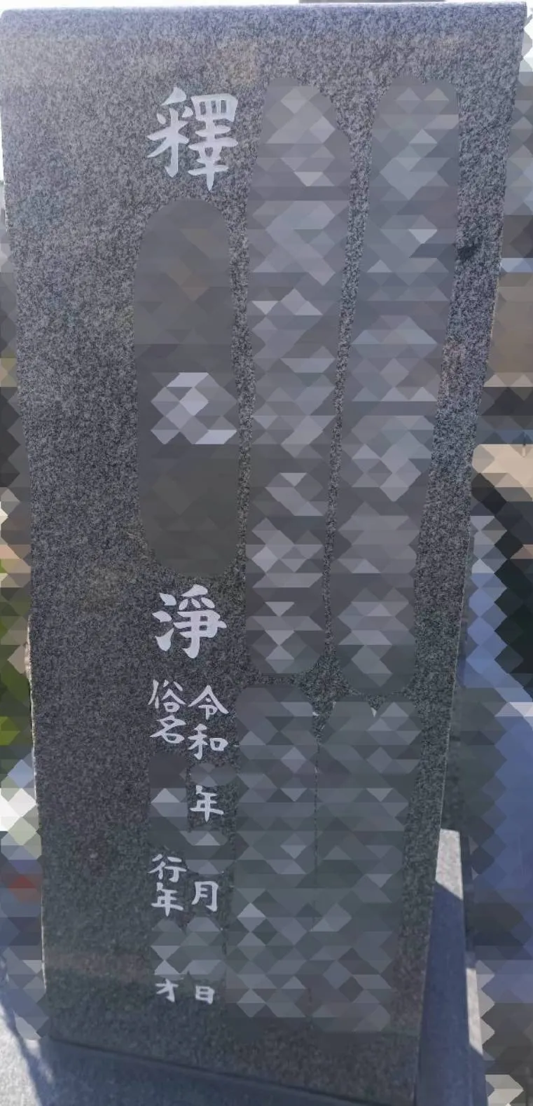 今回は本体の竿石の向かって右面の3名目へ法名と没年月日、俗名、行年を彫刻しました。