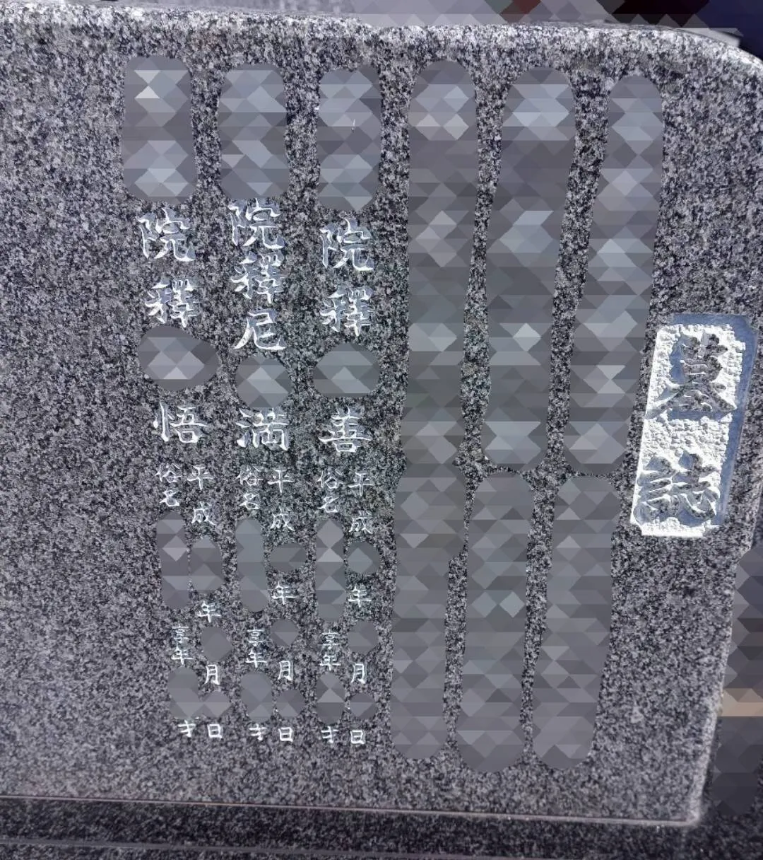 今回は墓誌板の4・5・6名目へ法名と没年月日、俗名、享年を彫刻しました。