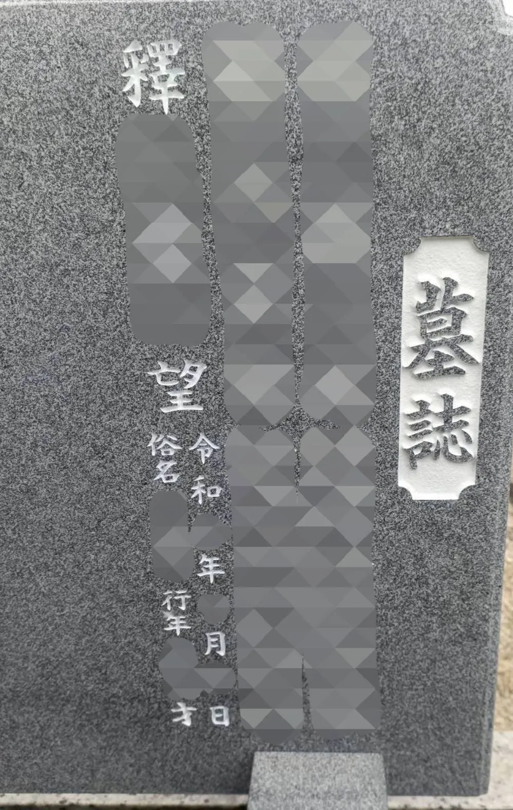 今回は墓誌板の3名目へ法名と没年月日、俗名、行年を彫刻しました。
